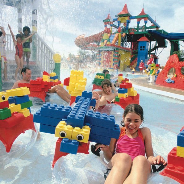 Feel the thrill on the high-speed Slide racers and Twist and Spin slides, take the whole family for a whirl on Red Rush, or meet your favorite animals in the Duplo Splash Safari.