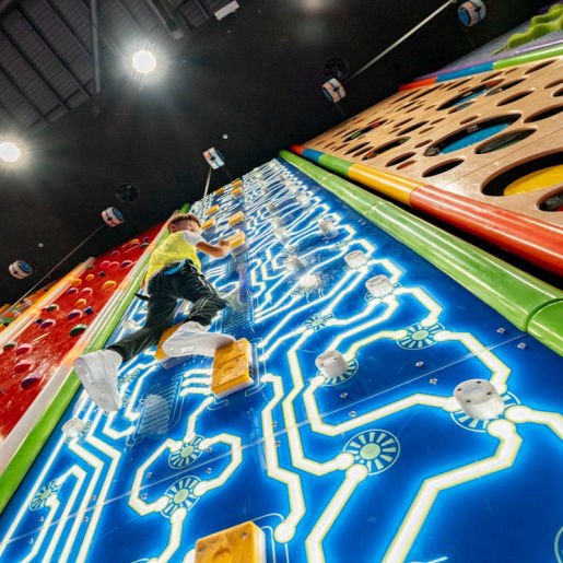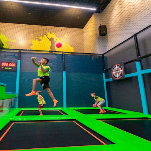 From bouncy dodgeball and sky-high basketball to wall climbing and a weightless trapeze, there are dozens of ways to jump around at Trampo Extreme. The fun doesn't stop there – bounce from activity to activity on interconnected trampolines and take unlimited dives into the foam ball pit.