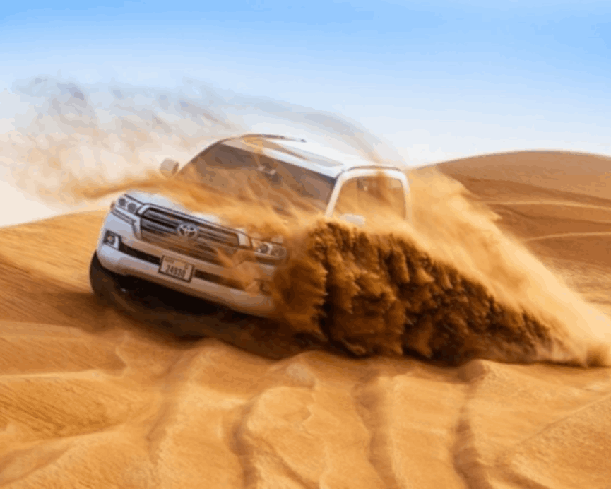 Dune Bashing: A thrilling ride over the dunes in a 4x4 vehicle, led by a skilled driver who takes you up and down the sand dunes.