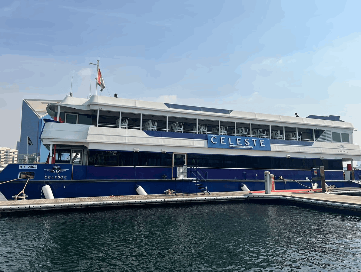 Embark on an unforgettable evening of luxury, culture, and breathtaking views aboard the Celeste Dinner Cruise, Dubai's premier floating dining experience along the historic Dubai Creek in Al Seef. This elegant cruise combines gourmet cuisine, live entertainment, and stunning vistas of Dubai's old and new skyline, creating the perfect setting for romance, celebrations, or special nights out.