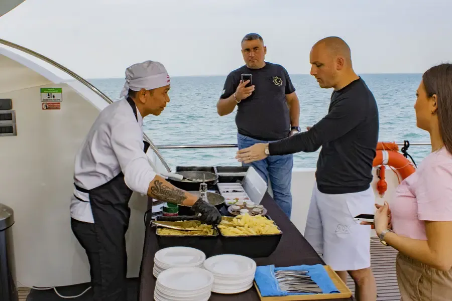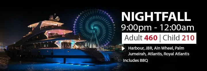 As you glide along the marina's calm waters, take in breathtaking views of Ain Dubai's glittering lights, the JBR Walk's vibrant shoreline, and the architectural marvels of Dubai Marina's skyscrapers. Your evening includes a flavorful buffet dinner featuring Arabic specialties like hummus and grilled kebabs alongside international dishes, with water and soft drinks included.